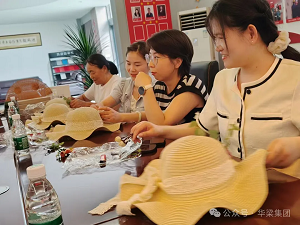 Si Gong Wei, chairman ng Hualiang Group, ang nanguna sa mga miyembro ng partido at empleyado na lumahok sa karanasan. Sa panahon ng proseso ng paggawa, ang lahat ay nakatuon sa pagpili ng iba't ibang mga bulaklak at maingat na idinisenyo ang bawat detalye ng tuktok ng sumbrero. Ang ilang mga empleyado ay bumulong sa mga guro na gawa sa kamay upang talakayin kung paano tumugma sa mga bulaklak. Sa pamamagitan ng kanilang sariling mga pagsisikap, nakumpleto ng bawat kasamahan ang kanyang sariling natatanging sumbrero ng dayami ng DIY. Kapag kumukuha ng litrato, hindi nila mahintay na ilagay ito at ipakita ito, naiwan ang kanilang sariling mga alaala sa tag -init.